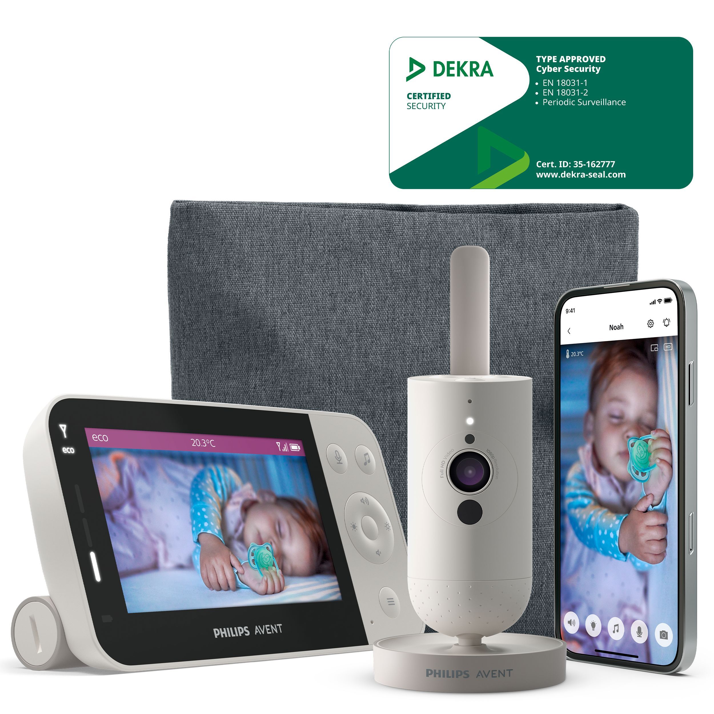 Houd je baby overal in de gaten met de Philips Avent Connected-babyfoon. Met ons Secure Connect-systeem blijf je overal in huis verbonden met je kleintje en met de Baby Monitor+-app blijf je ook buitenshuis verbonden.