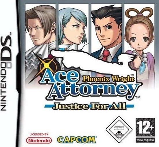 Nintendo Phoenix Wright: Ace Attorney Justice for All. Platform: Nintendo DS, ESRB-beoordeling: 12 jaar en ouder, PEGI-classificatie: 12, Ontwikkelaar: Capcom, Verschijningsdatum: 16,03,2007