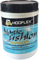 Magic Cushion® klauwpakking biedt aantoonbaar* snelle, verzachtende verlichting voor overbelaste, oververhitte hoeven. Het helpt de gezondheid van de hoeven op verschillende manieren te ondersteunen en begint binnen een uur de hitte van de hoeven te verminderen. Magic Cushion wordt vertrouwd door top hoefsmeden en gebruikt natuurlijke ingrediënten. Het kan naar behoefte gebruikt worden, of onder een hoefijzer en onderlegmat ingepakt worden en tijdens het beslaan blijven zitten. Potten van 2 lb, 4 lb, 8 lb en 28 lb.
