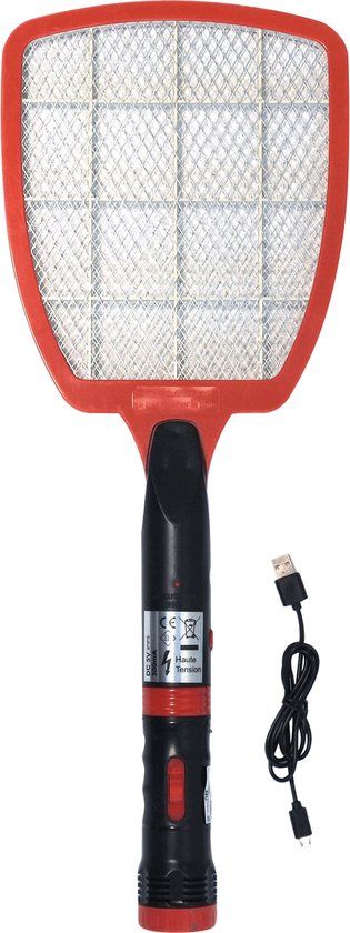Elektrische insectenmepper en zaklamp in één. Oplaadbaar via meegeleverde USB-kabel.