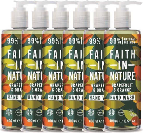FAITH IN NATURE Hand Wash Grapefruit & Orange 6 x 400ml - Antibacterial - Natural Ingredients - Vloeibare handzeep