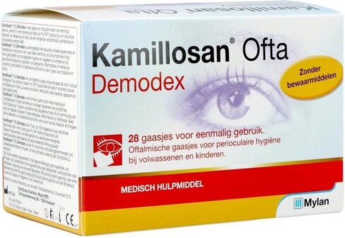 Dankzij de formule op basis van Hy-Ter ® en aloë, zijn Kamillosan ® Ofta Demodex -doekjes bijzonder geïndiceerd voor de hygiëne van de oogleden en wimpers en als hulpstof: