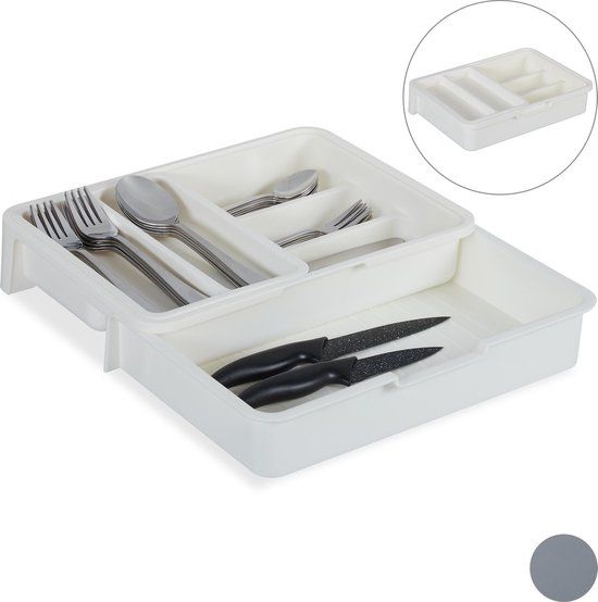 Relaxdays Bestekbak Uitschuifbaar - Bestek Organizer - Besteklade Kunststof - Wit - Besteksets