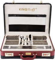 Luxe bestekset van het merk KINGHOFF ,gemaakt van hoogwaardig roestvrij staal, en geschikt voor de vaatwasser. Met dit 72-delige set heb je gelijk alles in huis. De koffer beschikt over een cijferslot zodat je het bestek veilig kan opbergen. De kit bestaat uit:
