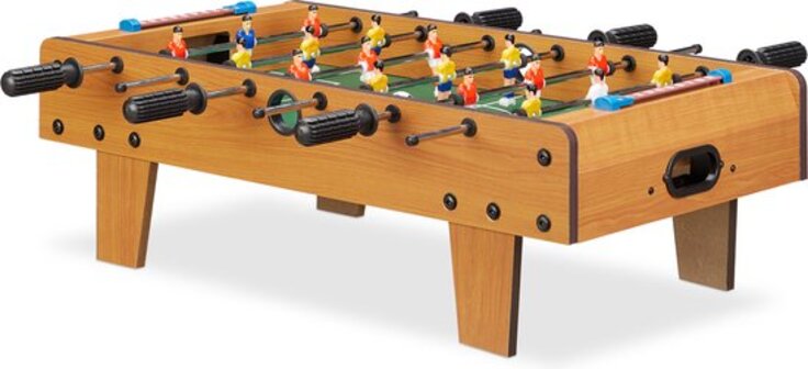 Ontdek de sportieve kant van jezelf met de Relaxdays 10022517 tafelvoetbal voor kinderen en volwassenen. Dit tafelspel combineert compact design met duurzaamheid, dankzij de afmetingen van 69 x 37 cm en het robuuste houten materiaal. De houtlook met een groen-bruin kleurenschema levert een natuurlijke uitstraling die in elk interieur past. De zwarte kleurdetails voegen een extra vleugje stijl toe. Geschikt voor zowel jong als oud, het voetbalspel houdt iedereen betrokken en entertained. Of je nu een levendige familieavond plant, je vrienden uitdaagt voor een competitief spelletje of gewoon je vaardigheden op je eentje wilt verbeteren, dit tafelvoetbalspel zorgt voor eindeloos plezier. Een fraaie combinatie van gebruiksgemak, stijl en duurzaamheid.