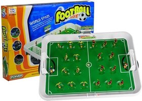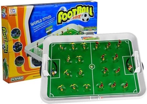 Deze mini tafelvoetbal is een leuke set, die bestaat uit een veld van 50 x 36 cm met twee volledige teams van elk elf spelers. De keeper is actief en dus te verplaatsen om het doel goed te kunnen verdedigen. De constructie van het veld is heel eenvoudig, het bestaat uit een dik, duurzaam bord en twee plastic doelen aan weerszijden. Met wat slimheid en behendigheid scoor jij jouw team naar de overwinning.