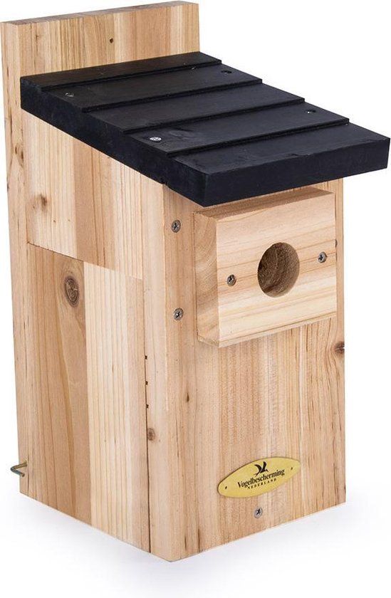Door het zwarte dak heeft de nestkast een moderne uitstraling. Deze komt uit een complete serie met zwarte daken die goedgekeurd zijn door VBN.