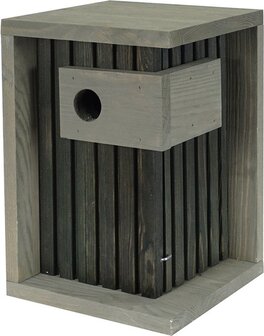Het Sofia nestkastje is een villa van een nestkast. De kubusvormige nestkast is behandeld met een niet-giftige houtbeits op waterbasis en heeft een decoratieve gegroefde zijkant en voorkant. De kast is ook open te maken aan de zijkant om het schoon te maken en te controleren of alles goed gaat. De dubbele wand zorgt weer voor extra bescherming tegen roofdieren. Het ingangs-gat is 32 mm dus geschikt voor kleinere vogels.