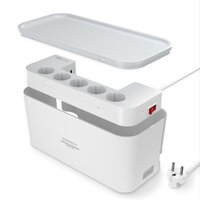 Acropaq Kabelbox inclusief stekkerdoos en USB snellader - 5-voudig + 3 x USB-A, Met schakelaar, 2500 W, 2 meter kabel - Opbergbox, Kabel organiser - Wit - Wandcontacten