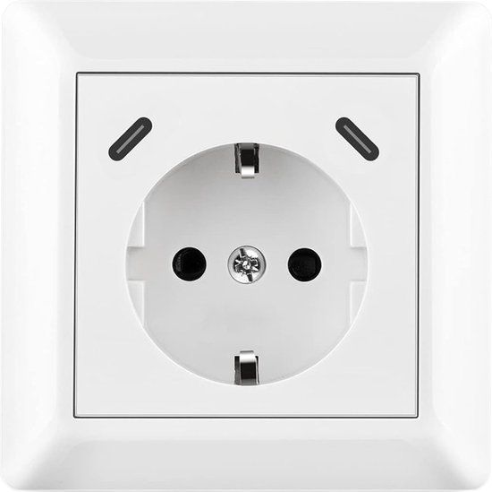 - Wandcontactdoos + twee USB-C poorten voor razendsnel opladen.