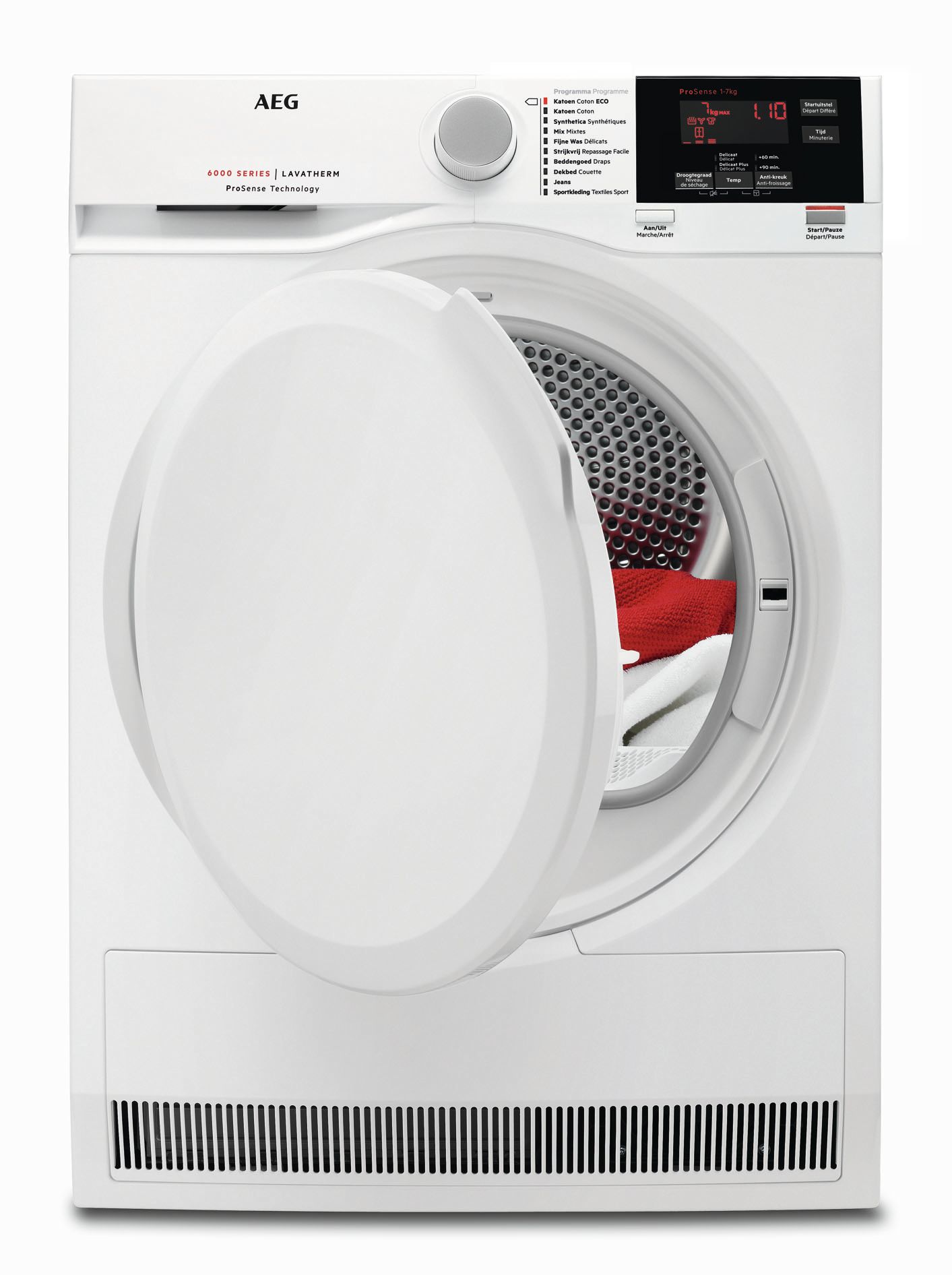 Qua design komt de AEG T6DBG72P in een strakke witte behuizing en voorzien van een RVS trommel, waardoor het een duurzaam en stevig model is. De droger heeft een links scharnierende deur en de bediening is door middel van touch. Een handige resttijdaanduiding vertelt u precies hoe lang de droger nog bezig zal zijn met uw was.Veilig en zuinig