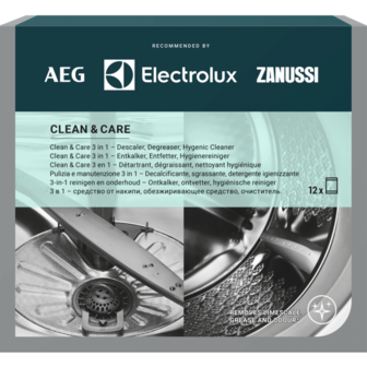 Bekijk productElectrolux M2GCP120 - 3 in 1 Ontkalker, Ontvetter en Hygiënische Reiniger - 12 Zakjes - Wasmachinereinigers