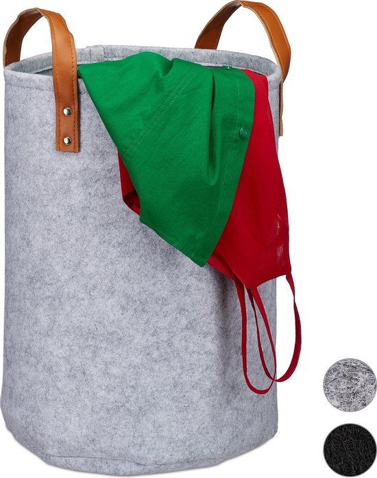 Relaxdays wasmand vilt - 28 l - opvouwbaar - grijs - Wasmanden