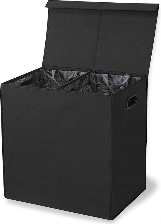 LuxeBass Wasmand met 2 vakken - 120L Opvouwbaar - Zwart - Wasmanden
