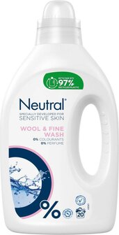 De formule is samengesteld uit een combinatie van verzorgende ingredienten zodat de huid niet geirriteerd en beschadigd raakt. Dit wasmiddel is te gebruiken in de wasmachine, maar is ook geschikt voor handwas. Neutral Fijnwas 0% is behalve mild voor je huid, ook goed voor kwetsbare stoffen. Het beschermt wol, dons, zijde en andere kwetsbare stoffen. Dit wasmiddel is speciaal geformuleerd om het risico op huidirritatie te verminderen.