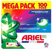 Het unieke ontwerp van de Ariel Color 3-in-1 Pods met verschillende compartimenten houdt de ingrediënten stabiel en gescheiden totdat ze je was bereiken, waar ze supergeconcentreerde reinigingskracht geven.Heb jij dit product in bezit en wil je graag je mening geven? Start dan hieronder met het schrijven van je review. Afhankelijk van de details duurt het schrijven van een review gemiddeld tussen de 3 en 10 minuten. Met jouw mening help je andere bezoekers een betere keuze te maken én maak je iedere maand kans op €250,-! Klik hier voor de actievoorwaarden.