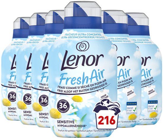 Bekijk productLenor Wasverzachter Fresh Air Sensitive 36 Wasbeurten - 6 x 504 ml - Voordeelverpakking - Wasverzachter
