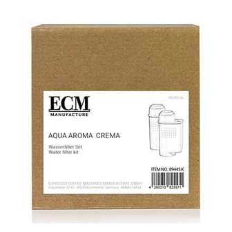 ECM Waterfilter Set Aqua Aroma Crema 2 stuksVerbeter de smaak van je espresso en behoud de puurheid van je favoriete koffiebonen met de ECM Waterfilter Set Aqua Aroma Crema. Deze set van 2 hoogwaardige waterfilters is ontwikkeld om de waterkwaliteit te optimaliseren, waardoor elke kop koffie een meesterwerk wordt.Pure WaterbasisZorg voor een zuivere en smaakvolle waterbasis voor je koffie door ongewenste onzuiverheden te verwijderen. De Aqua Aroma Crema filters verminderen chloor en kalk, waardoor je koffie de volle smaak en aroma's behoudt.Verlengde Levensduur van je MachineBescherm je espressoapparaat tegen de schadelijke effecten van kalkaanslag. De ECM waterfilters verminderen de vorming van kalkaanslag, waardoor de levensduur van je machine wordt verlengd en de prestaties behouden blijven.Eenvoudige InstallatieGeen gedoe of ingewikkelde installatie. De ECM Waterfilter Set is ontworpen voor gebruiksgemak. Test de hardheid van het kraanwater met de meegeleverde test strips en stel het waterfilter in op de corresponderende hardheid. Plaats vervolgens eenvoudigweg de filters in het waterreservoir van je machine en geniet van een probleemloze werking.Hoe te GebruikenVerwijder de Verpakking: Neem de waterfilters uit de verpakking en spoel ze kort af onder koud water.Plaats in het Waterreservoir: Plaats de filters in het waterreservoir van je espressoapparaat, volgens de instructies van de fabrikant.Geniet van Verbeterde Koffie: Zet je espresso met vertrouwen, wetende dat de ECM Waterfilter Set Aqua Aroma Crema de beste waterkwaliteit levert voor een ongeëvenaarde koffiebeleving.Upgrade je koffie-ervaring vandaag nog met de ECM Waterfilter Set. Bestel nu en ontdek het verschil dat zuiver water kan maken in elke slok.Let op: raadpleeg vóór het plaatsen van de waterfilter altijd de meegeleverde handleiding en/of bekijk de onderstaande video. Het waterfilter is uitsluitend geschikt voor ECM espressomachines waarvan de watertank is voorzien van het witte waterfilter adapter. Neem bij twijfel contact op met onze klantenservice.