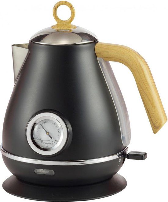 Kassel 93226 Retro Waterkoker - 1.7L - Zwart - RVS - Thermometer - Waterkokers