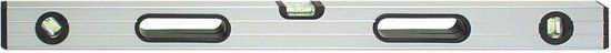 Waterpas, 600 mm. Stevig aluminium profiel met 2 gefreesde meetvlakken, 3 libellen (horizontaal, verticaal en 45º), en 2 opengewerkte grepen). De meetnauwkeurigheid bedraagt 0,057º = 1 mm/m.