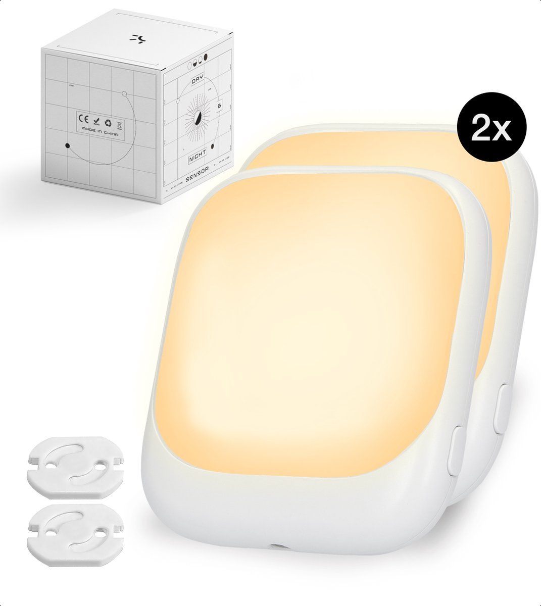Hello tomorrow Dimbare Stopcontact Nachtlampjes - 2 Stuks - Warm Wit - ABS - Babykamer - Wekkers