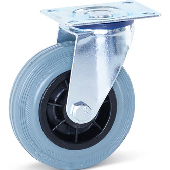 * Niet strepend grijs rubber * 120kg draagvermogen * Bevestigingsplaat 100x84mm * Bouwhoogte 152mm