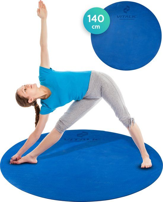 VITALIC Ronde Yoga Mat - 140cm - 6mm Dik - Blauw - Anti-slip - Inclusief Draagriem - Yoga- en pilatesmatten
