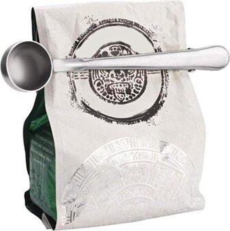 Handig Koffie Schepje met sluiting/klem voor over een pak koffie. Altijd alles bij de hand met deze handige koffie schep, na het scheppen past de gekartelde sluiten die in het handvat zit makkelijk over een pak koffie. Op deze manier is de pak koffie altijd lucht dicht en is er altijd een koffie schepje bij de hand.