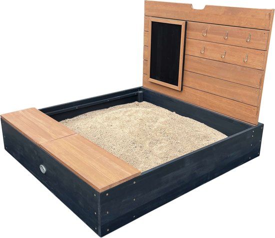 AXI Mandy zandbak met opbergruimte en deksel Antraciet/bruin - Speelwand met krijtbord en haakjes - Inclusief gronddoek - Zandbakafdekkingen